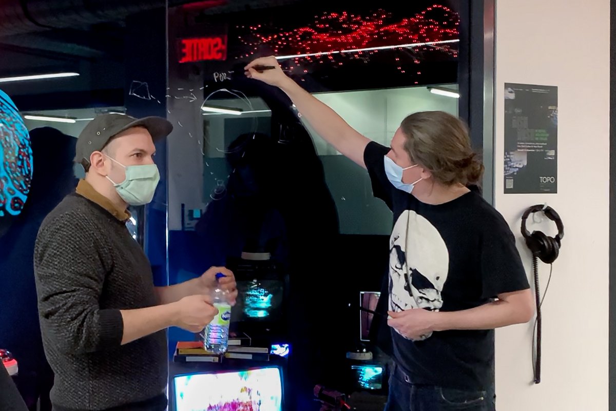 Rob Feulner and Sam Meech will be running an end-of-show workshop on Saturday 18th at 1 PM at TOPO’s studio. The artists will go through the installation with the participants, then invite them to create video samples with analogue video gear and re-combine them using interactive video software (Isadora). The workshop should end just in time for a 5-7 finissage.
