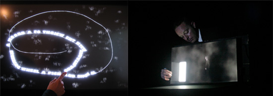 Aussi au programme de la soirée figure le poète performeur et artiste en arts numériques Jason Edward Lewis, connu pour son exploration de la poésie interactive et de la typographie animée. L’artiste présentera Poems for Excitable Mobile Media (P.o.E.M.M) et plus spécifiquement le corpus poétique Vital élaboré autour des thèmes de l’identité, de l’authenticité et de la contingence. Ces poèmes, créés spécifiquement pour une interaction tactile avec des appareils mobiles, témoignent des préoccupations formelles de l’artiste face aux modes alternatifs d’écriture et de lecture. Lors de sa performance, Jason Edward Lewis utilisera son iPad comme instrument de contrôle pour interagir avec le texte des poèmes au fil de sa lecture et de leur projection dans l’espace du Centre PHI.